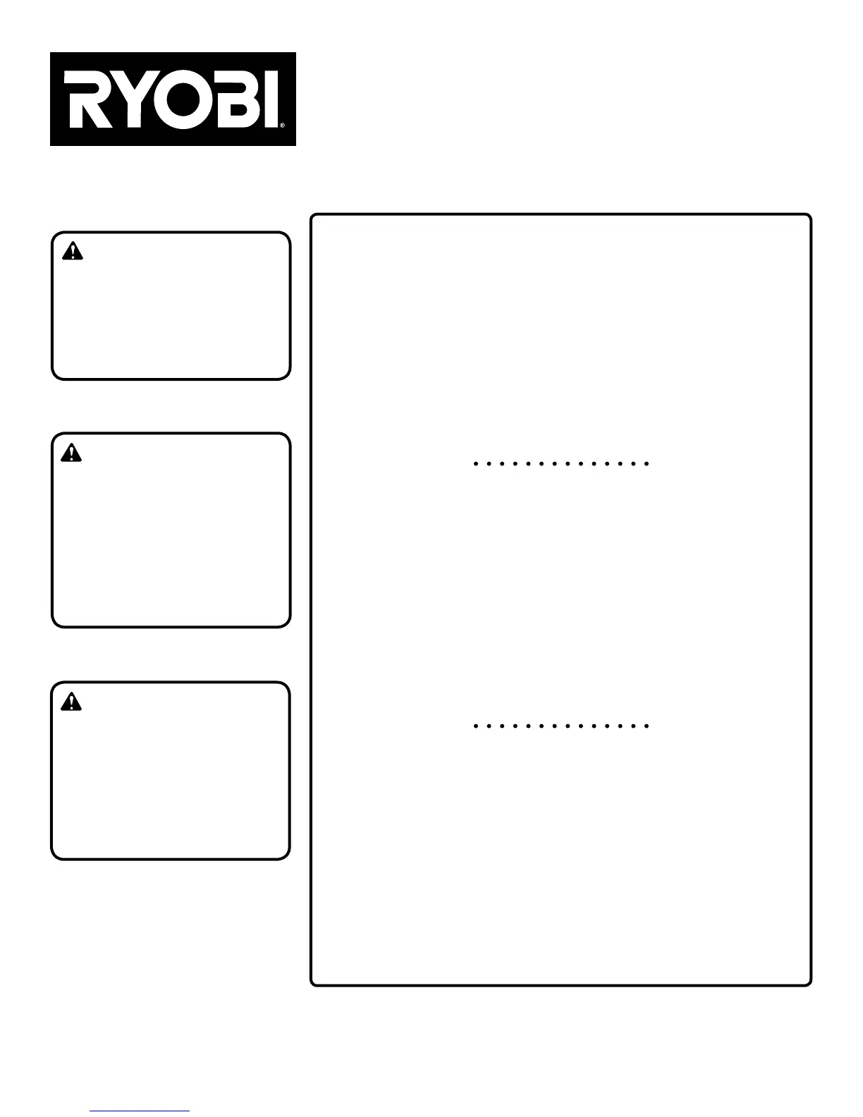 Replacement parts can be purchased online at www.ryobitools.com or by calling