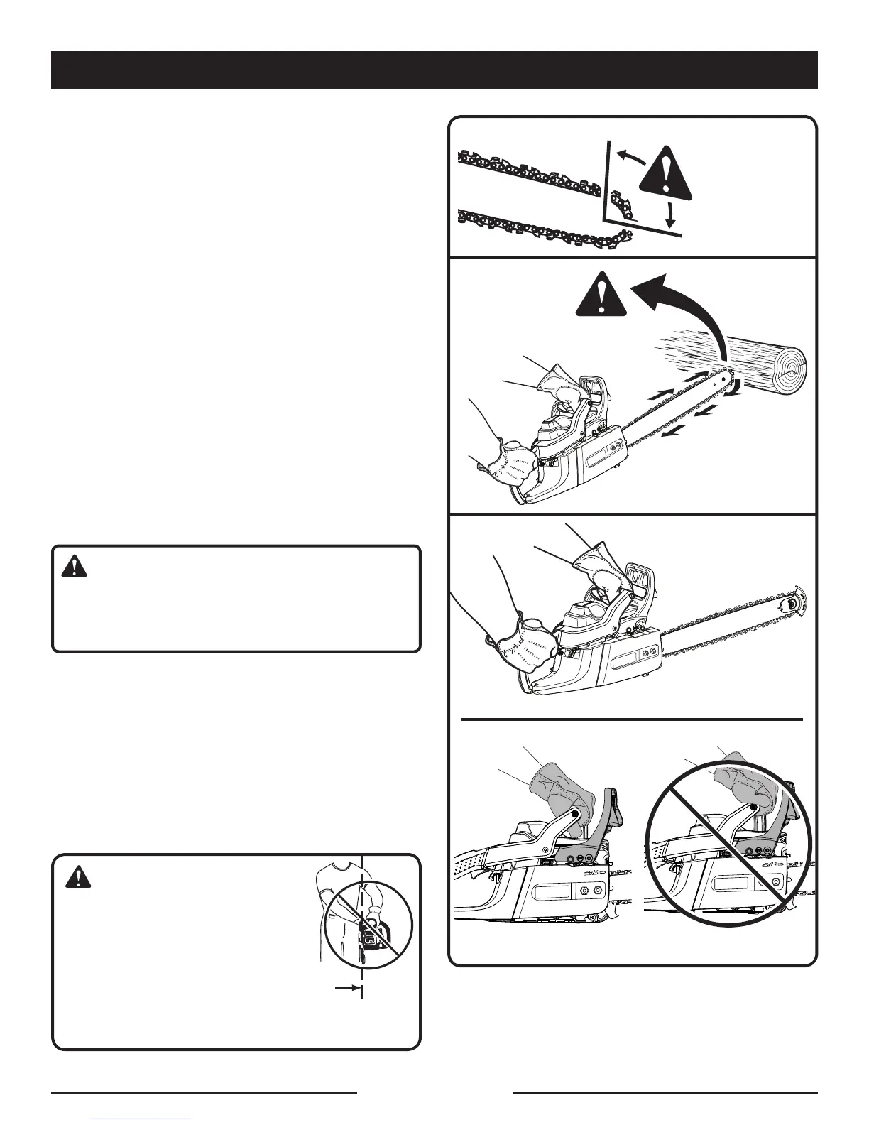 Hold the saw firmly with both hands. Always