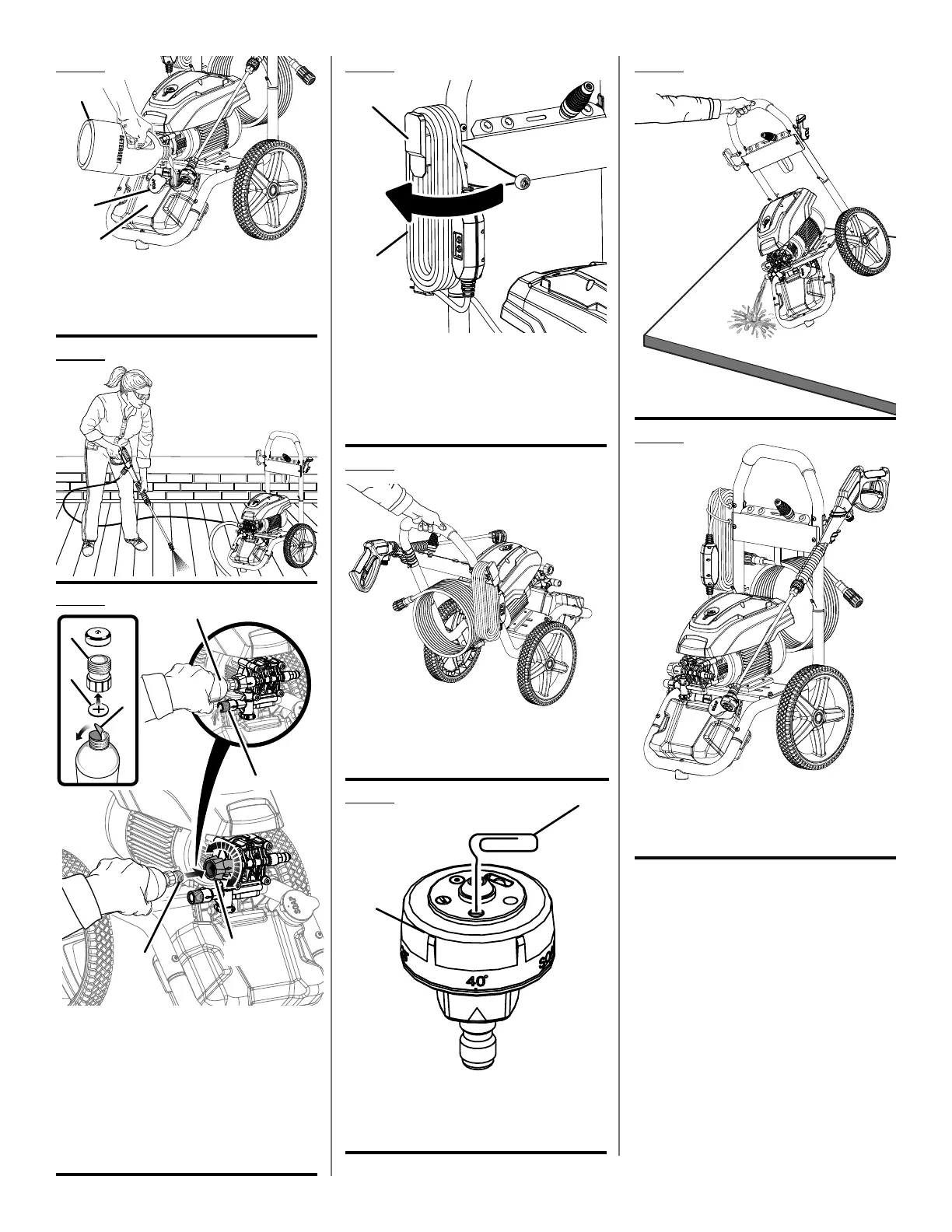 E - Pump outlet (sortie de la pompe, orificio de
