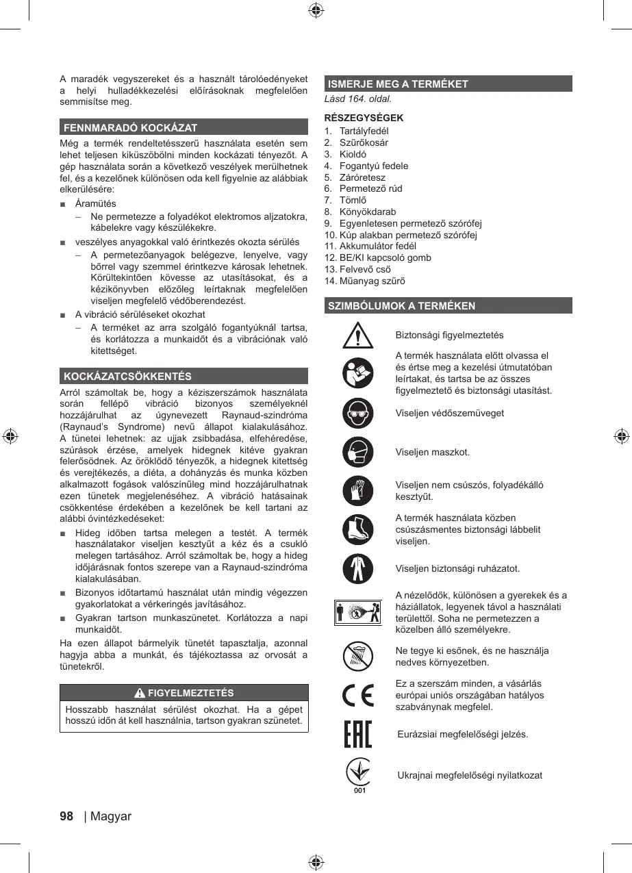 fel, és a kezelőnek különösen oda kell fi gyelnie az alábbiak