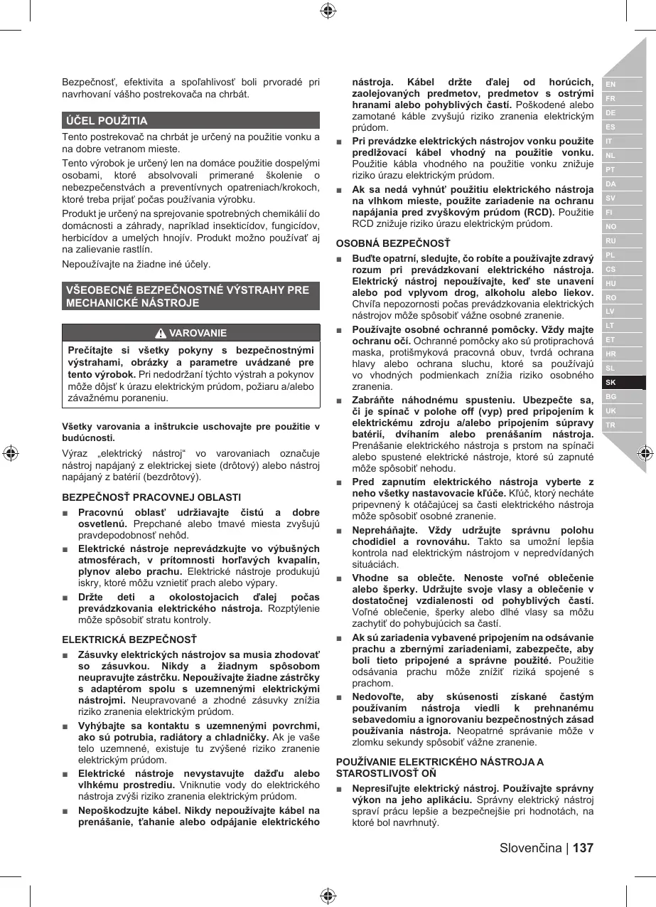 Všetky varovania a inštrukcie uschovajte pre použitie v