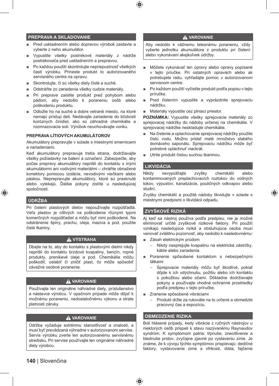 Používajte len originálne náhradné diely, príslušenstvo