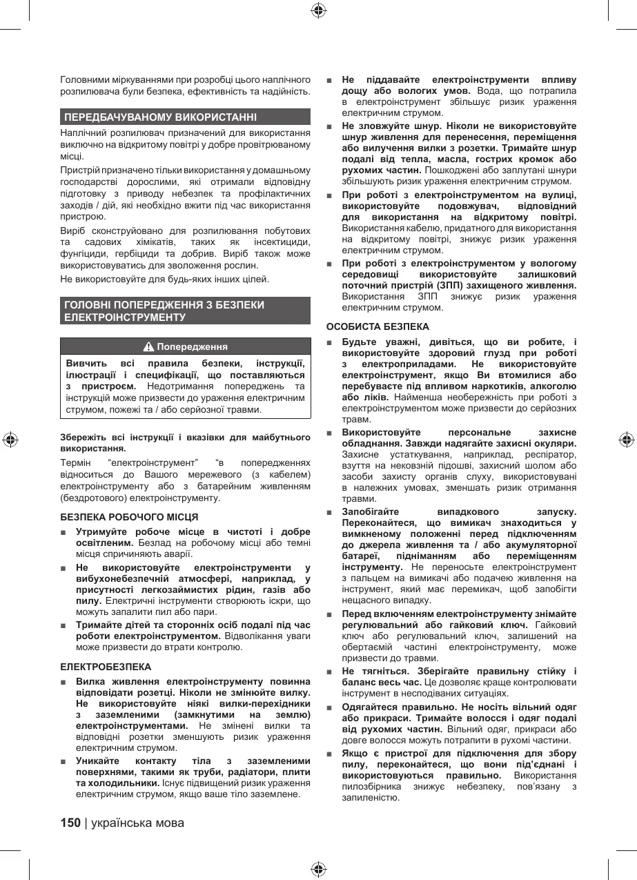 ГОЛОВНІ ПОПЕРЕДЖЕННЯ З БЕЗПЕКИ
