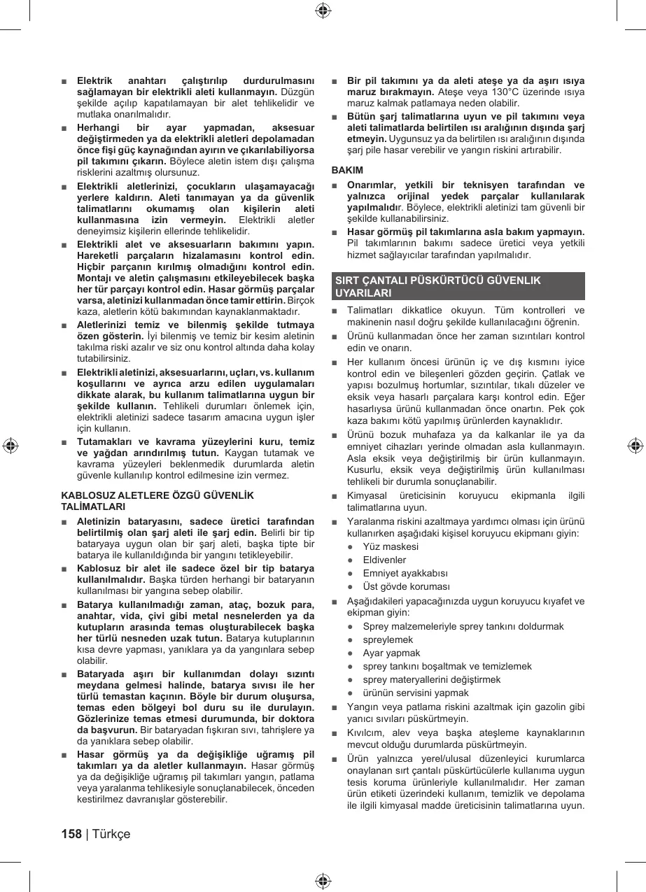 ■ Hasar görmüş pil takımlarına asla bakım yapmayın.