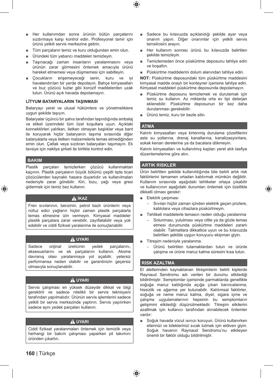 ■ Her kullanım sonrası ürünü bu kılavuzda belirtilen