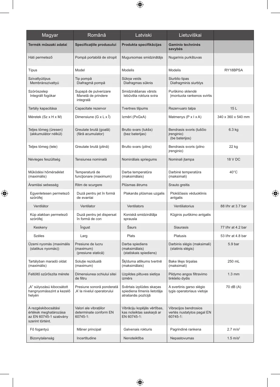 Névleges feszültség Tensiunea nominală Nominālais spriegums Nominali įtampa 18 V DC