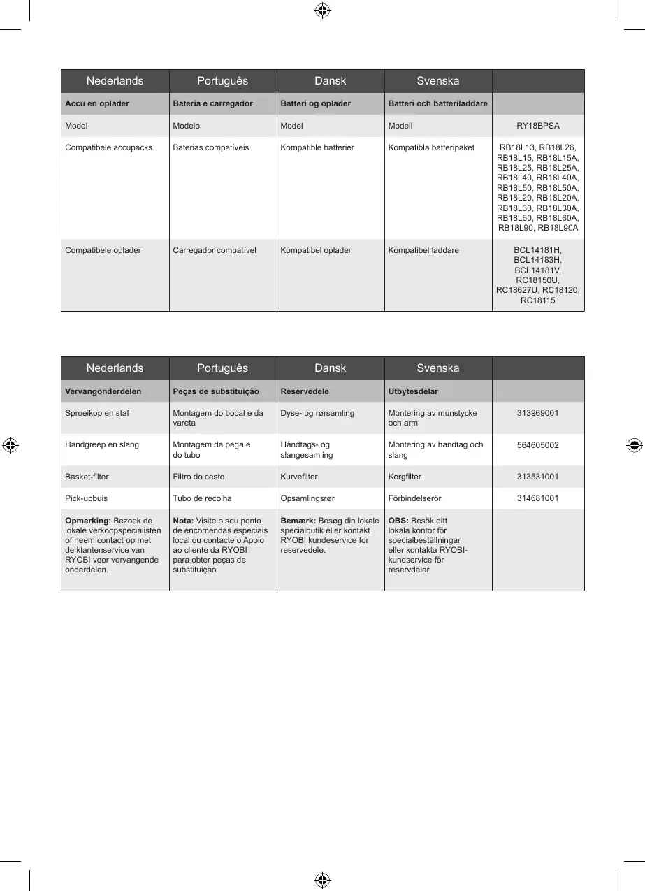 Vervangonderdelen Peças de substituição Reservedele Utbytesdelar