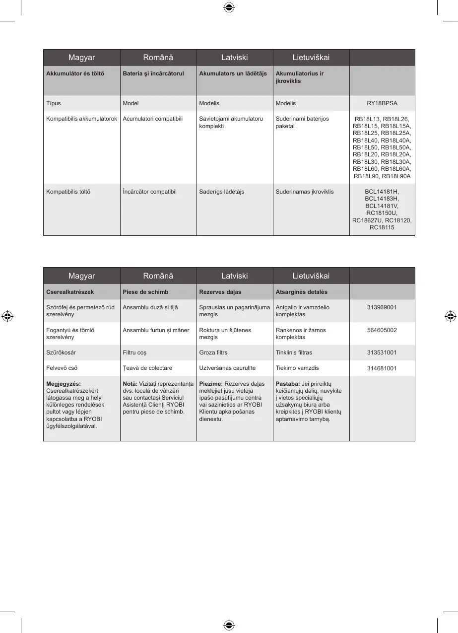 Kompatibilis akkumulátorok Acumulatori compatibili Savietojami akumulatoru