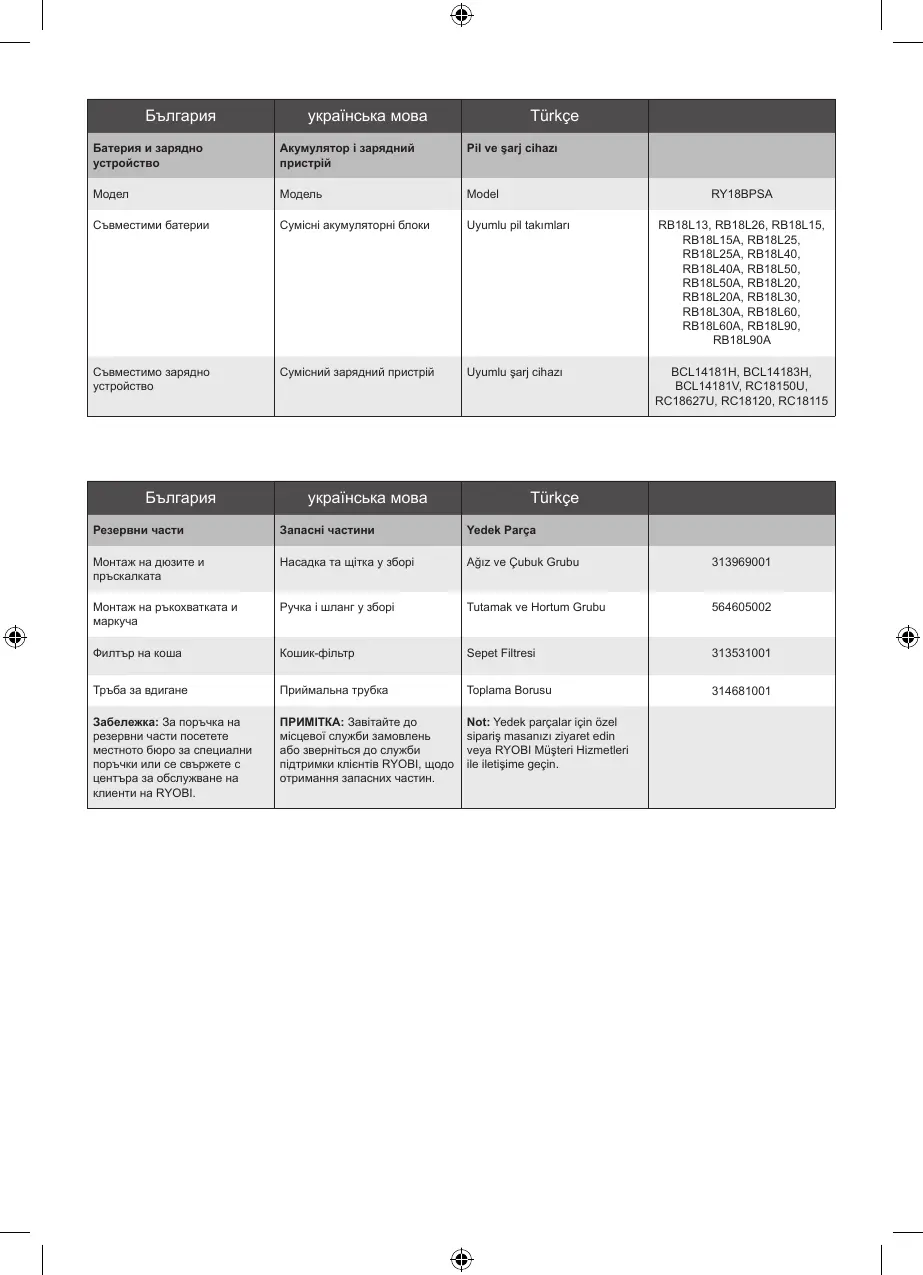 Съвместими батерии Сумісні акумуляторні блоки Uyumlu pil takımları