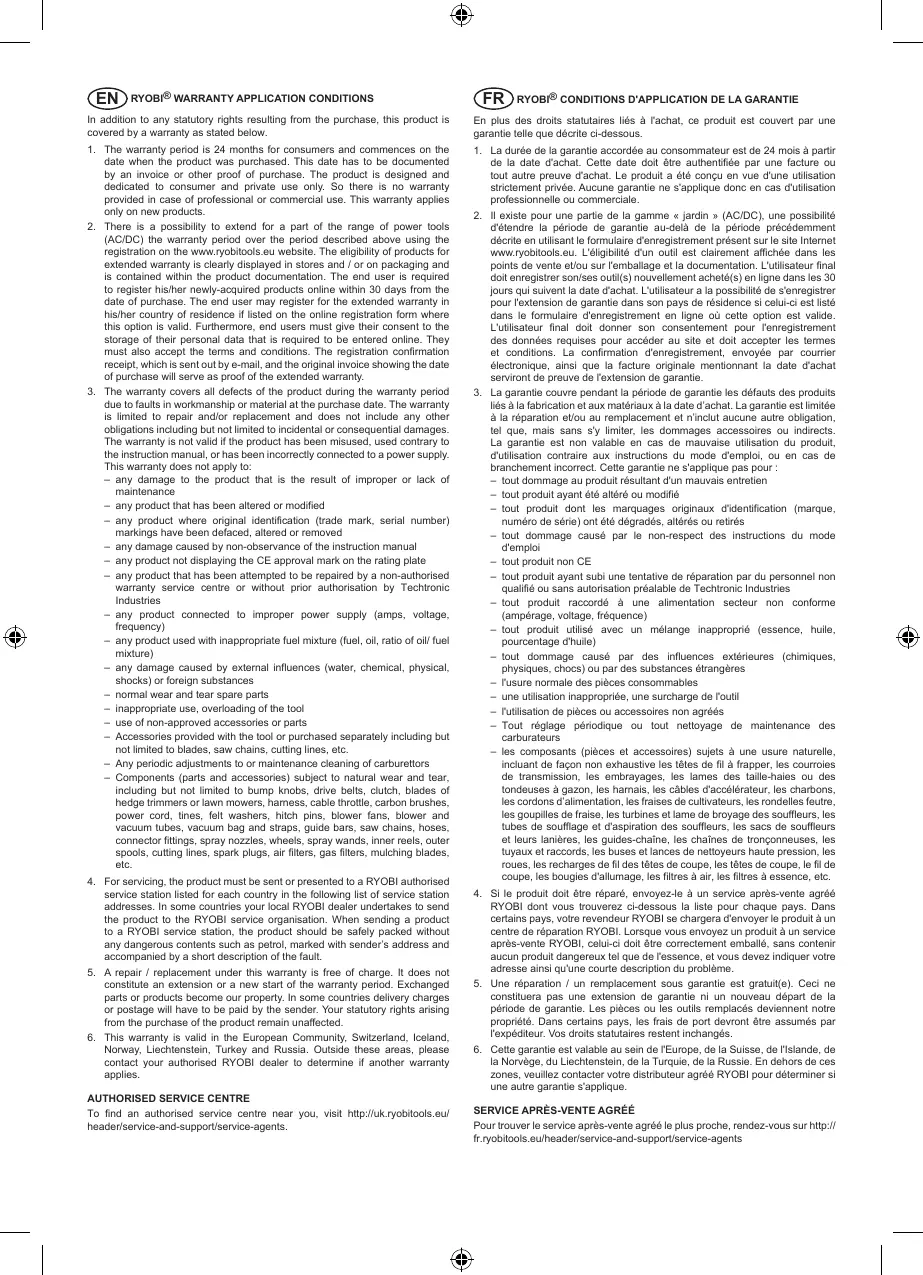 To nd an authorised service centre near you, visit http://uk.ryobitools.eu/