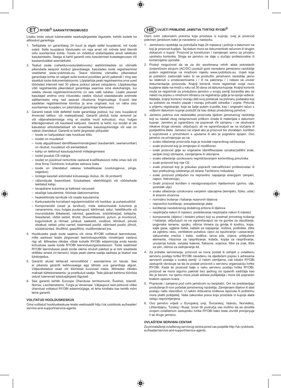putem registriranja na mrežnom mjestu www.ryobitools.eu. Uvjeti koje
