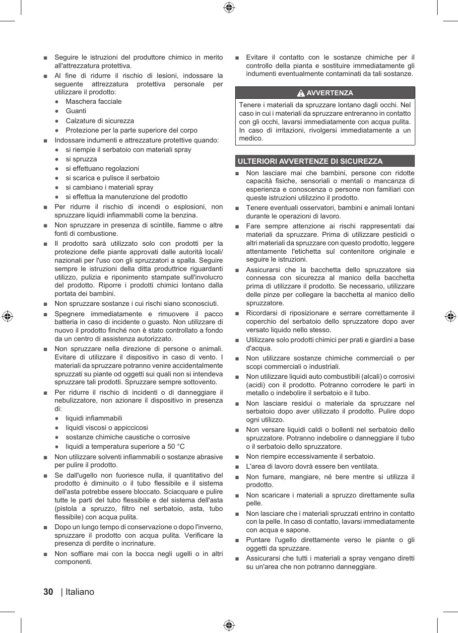 nazionali per l'uso con gli spruzzatori a spalla. Seguire