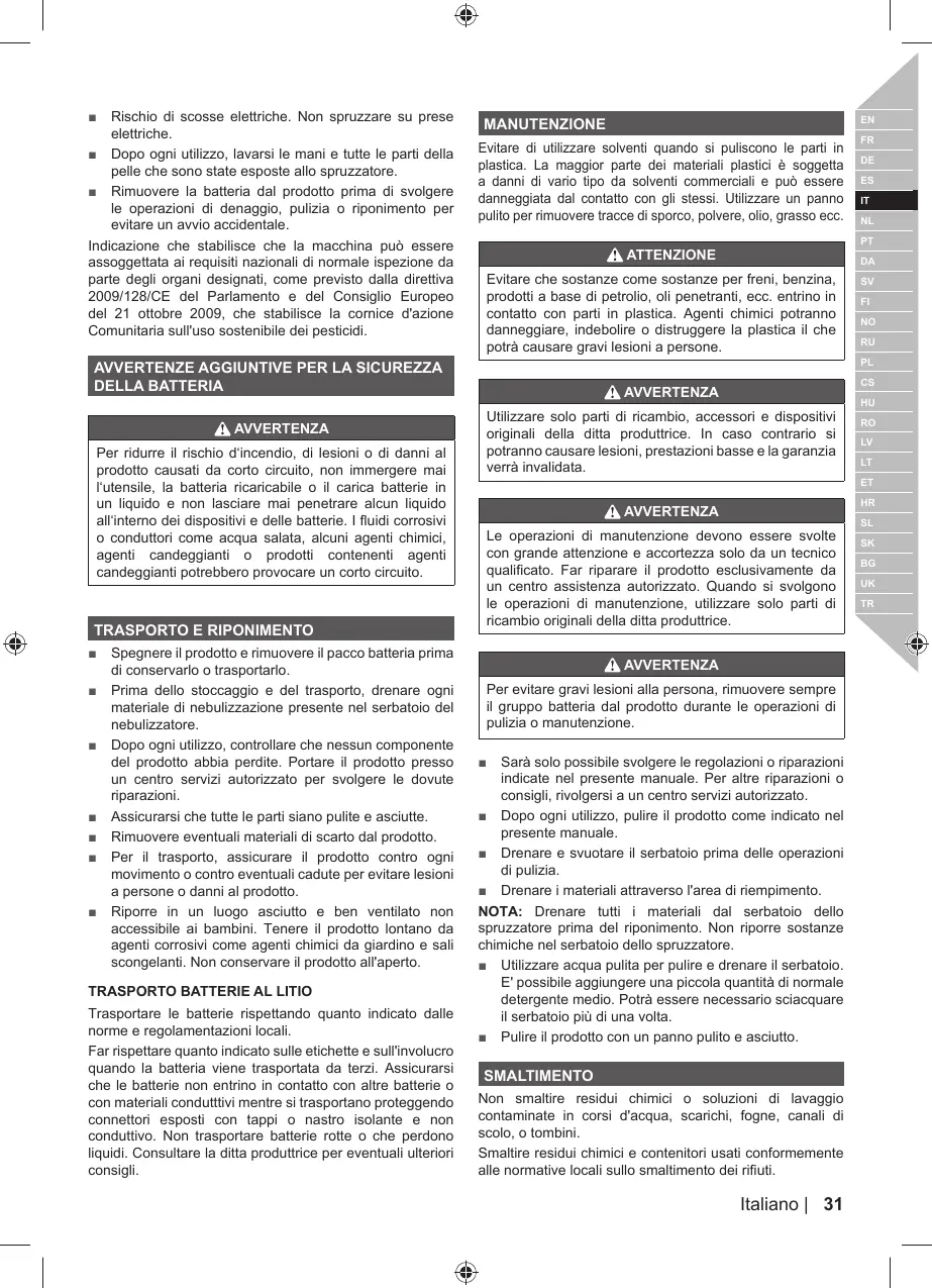 quando la batteria viene trasportata da terzi. Assicurarsi