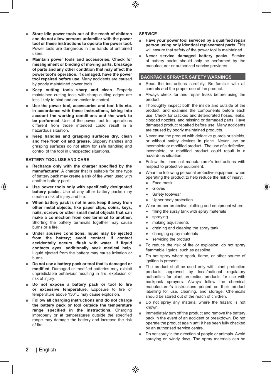 BACKPACK SPRAYER SAFETY WARNINGS