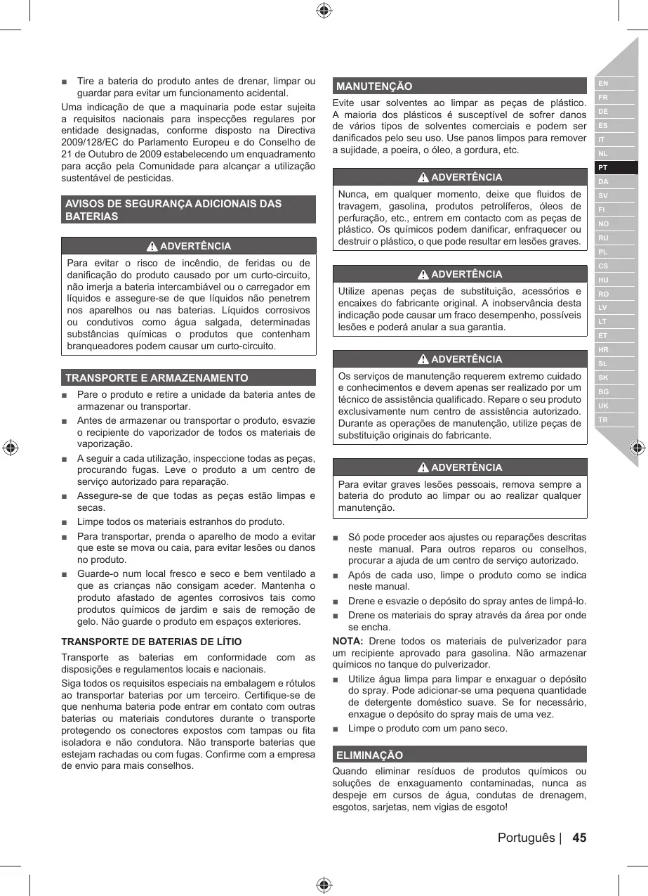 ■ Tire a bateria do produto antes de drenar, limpar ou