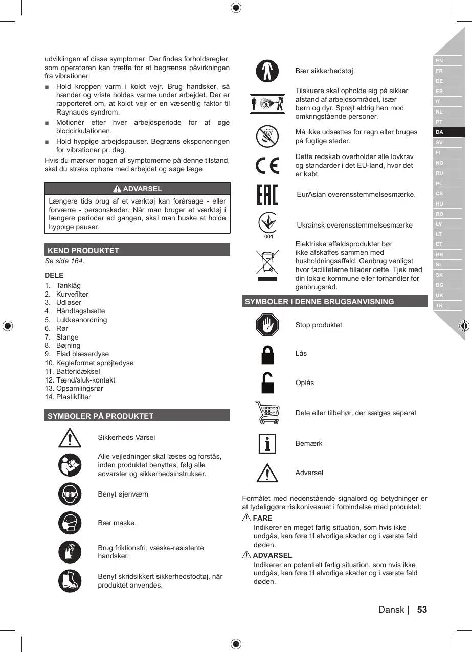 advarsler og sikkerhedsinstrukser.