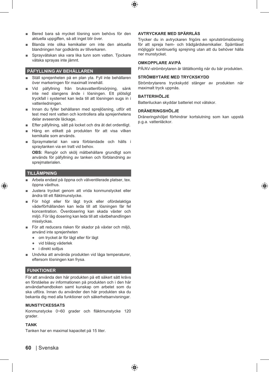 för att spreja hem- och trädgårdskemikalier. Spärrlåset