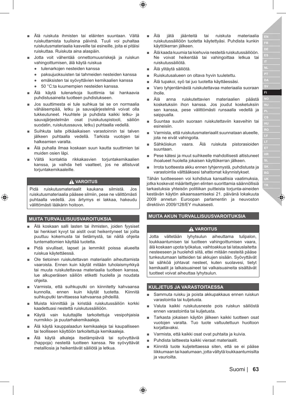 ■ Älä ruiskuta ihmisten tai eläinten suuntaan. Vältä