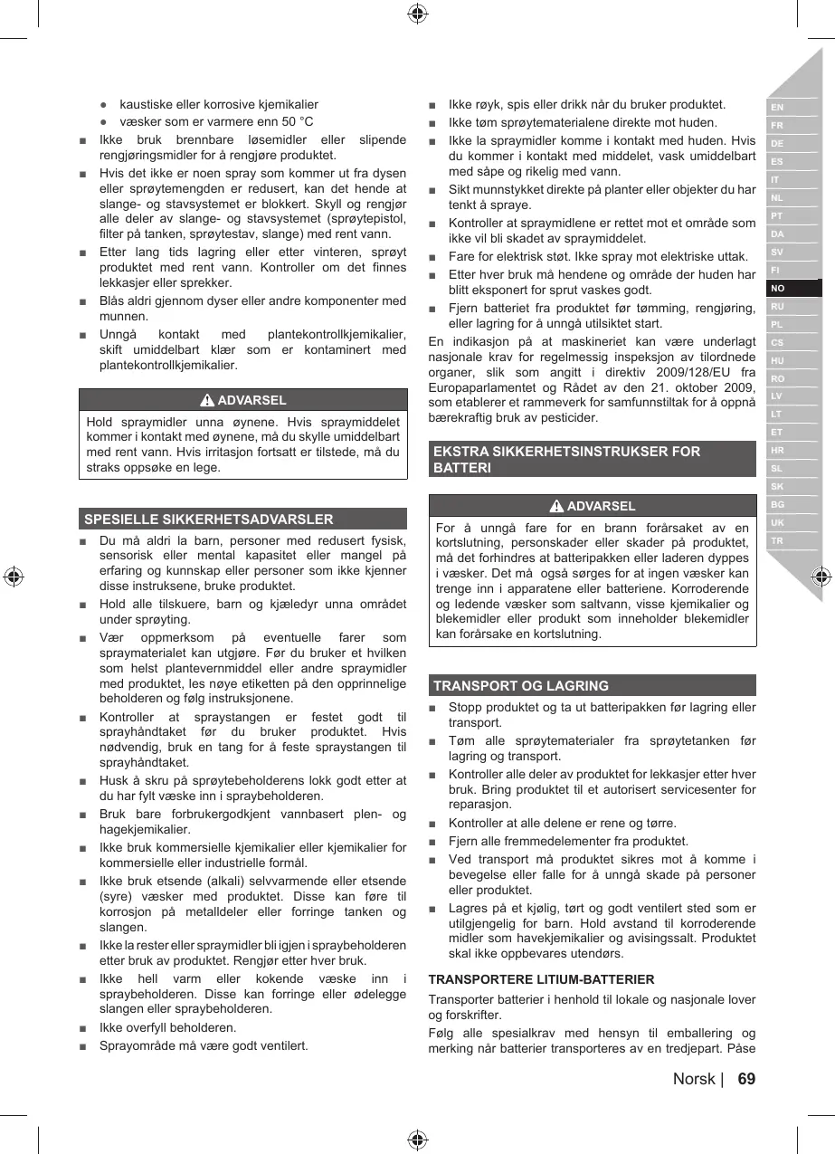 ■ Ikke la spraymidler komme i kontakt med huden. Hvis