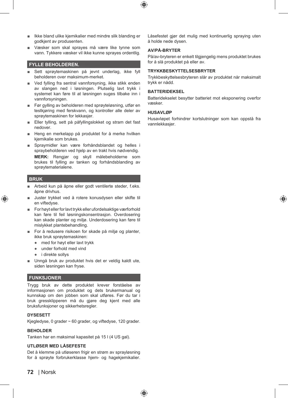 vann. Tykkere væsker vil ikke kunne sprayes ordentlig.