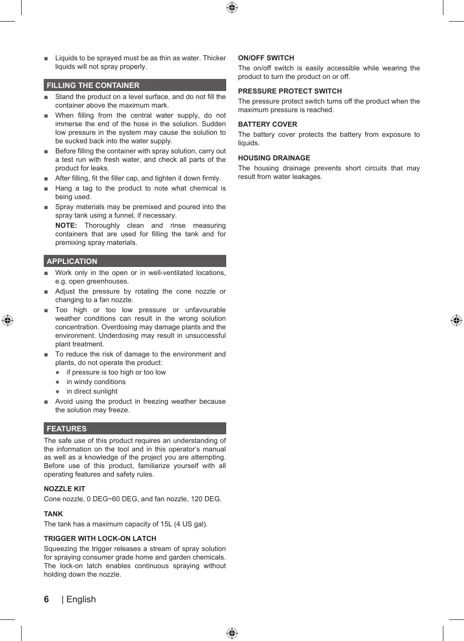 ■ Before filling the container with spray solution, carry out