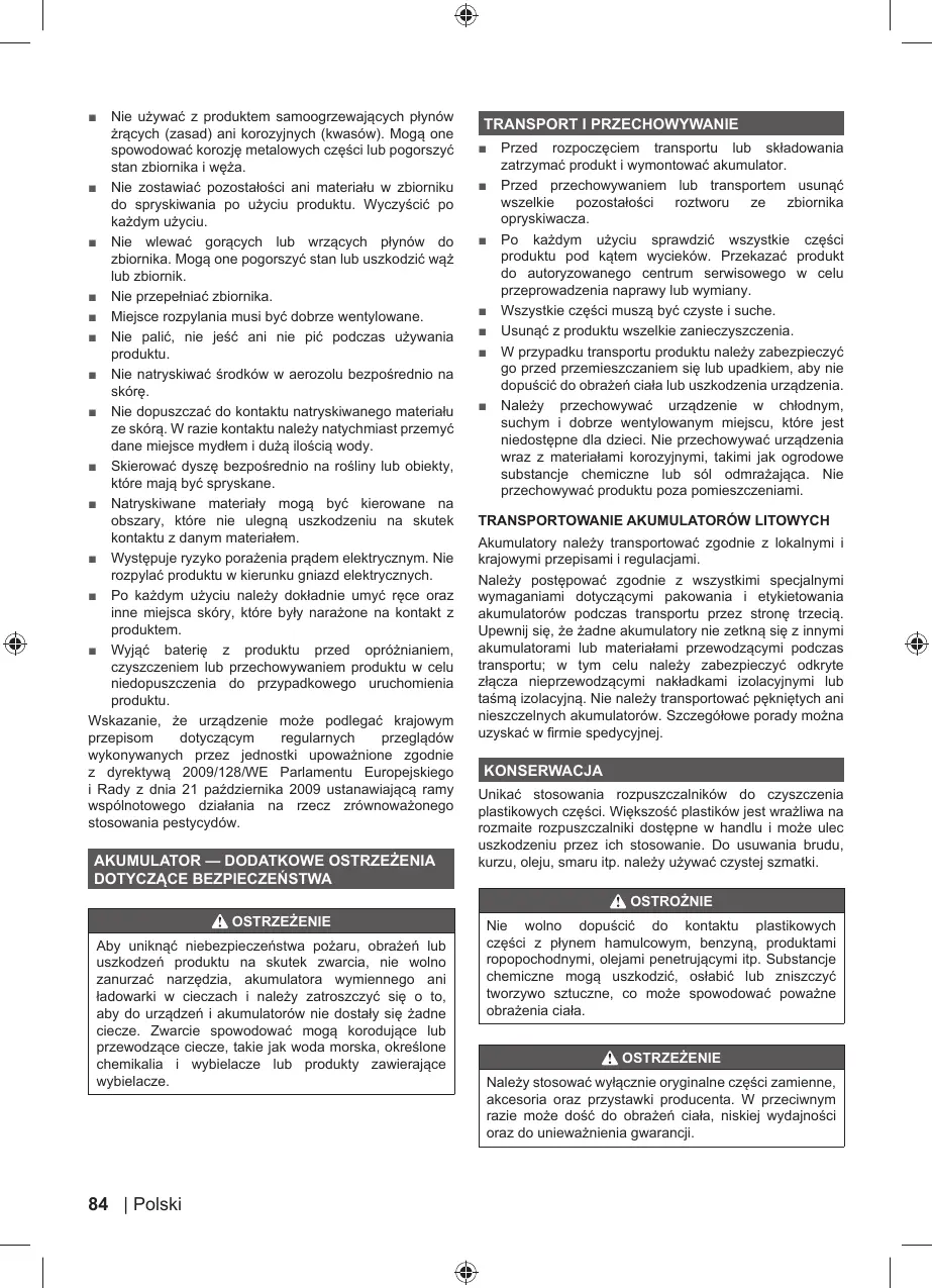 AKUMULATOR — DODATKOWE OSTRZEŻENIA