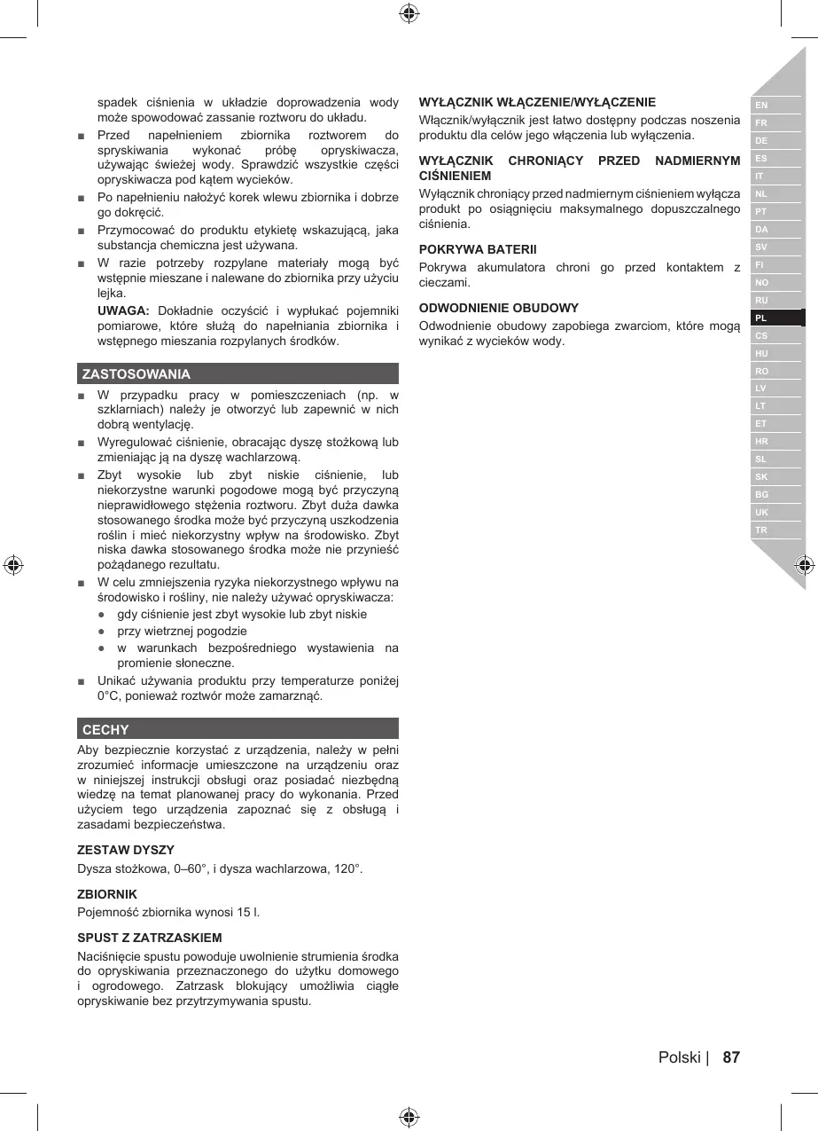 środowisko i rośliny, nie należy używać opryskiwacza: