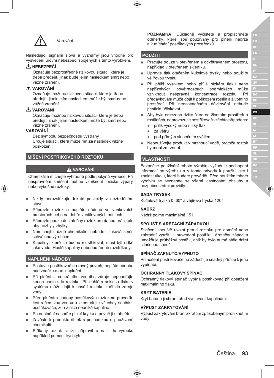 ■ Před plněním nádoby postřikovým roztokem proveďte