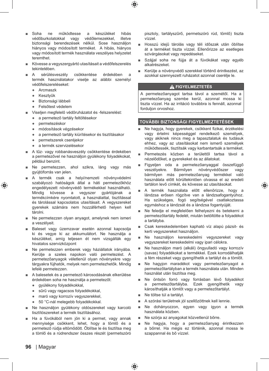 ■ Figyeljen oda a permetezőanyaggal összefüggő