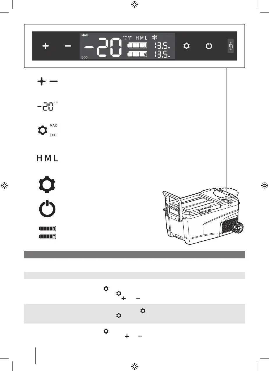 Zum Einstellen der Kühltemperatur und der Temperatureinheit auf Celsius