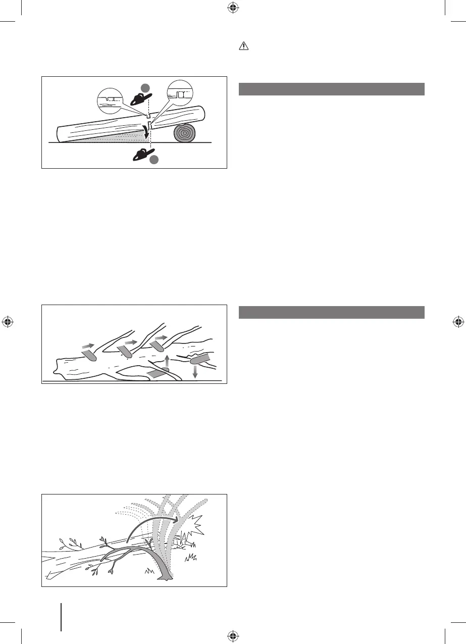 felfelé kell vágni, elkerülve ezzel a láncfűrész beakadását.