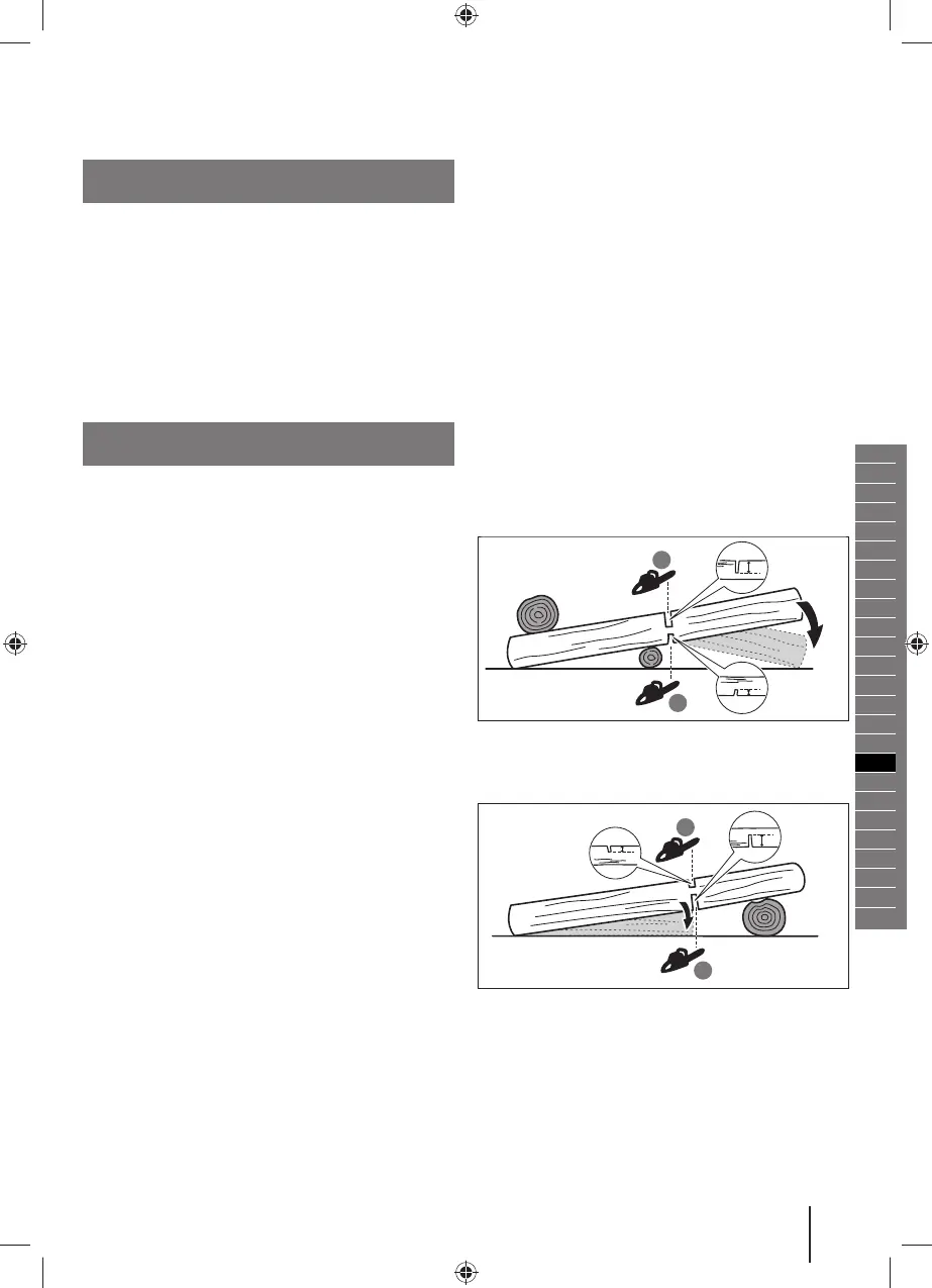 Tad pabeidziet zāģēšanu, veicot iezāģējumu no augšas