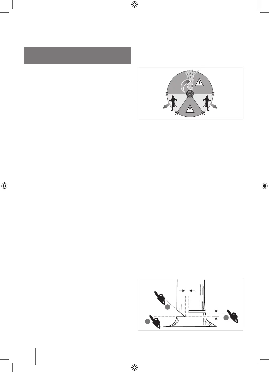 att trädet inte vrider sig och faller i fel riktning. Skär inte