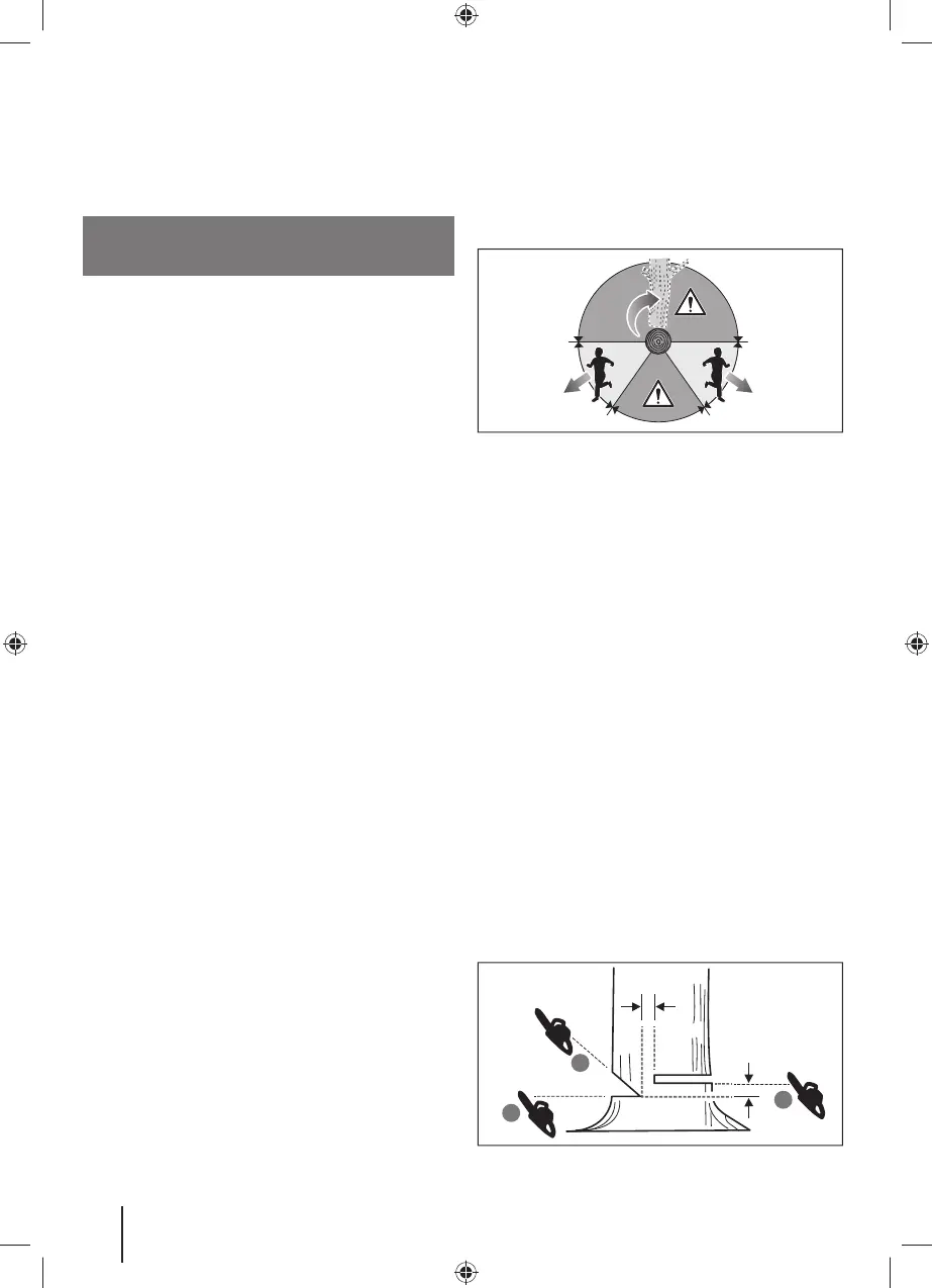 Motorsagbrukeren bør stå høyere enn treet i en evt.