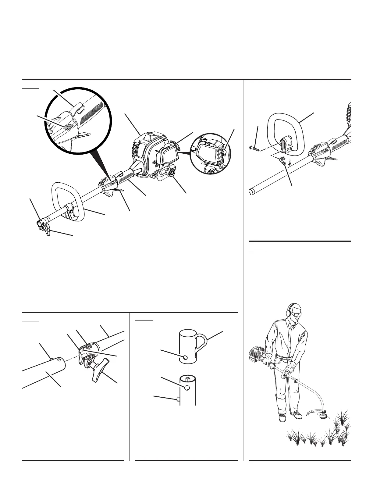D - Starter grip and rope (poignée du lanceur et corde, mango del arrancador y cuerda)