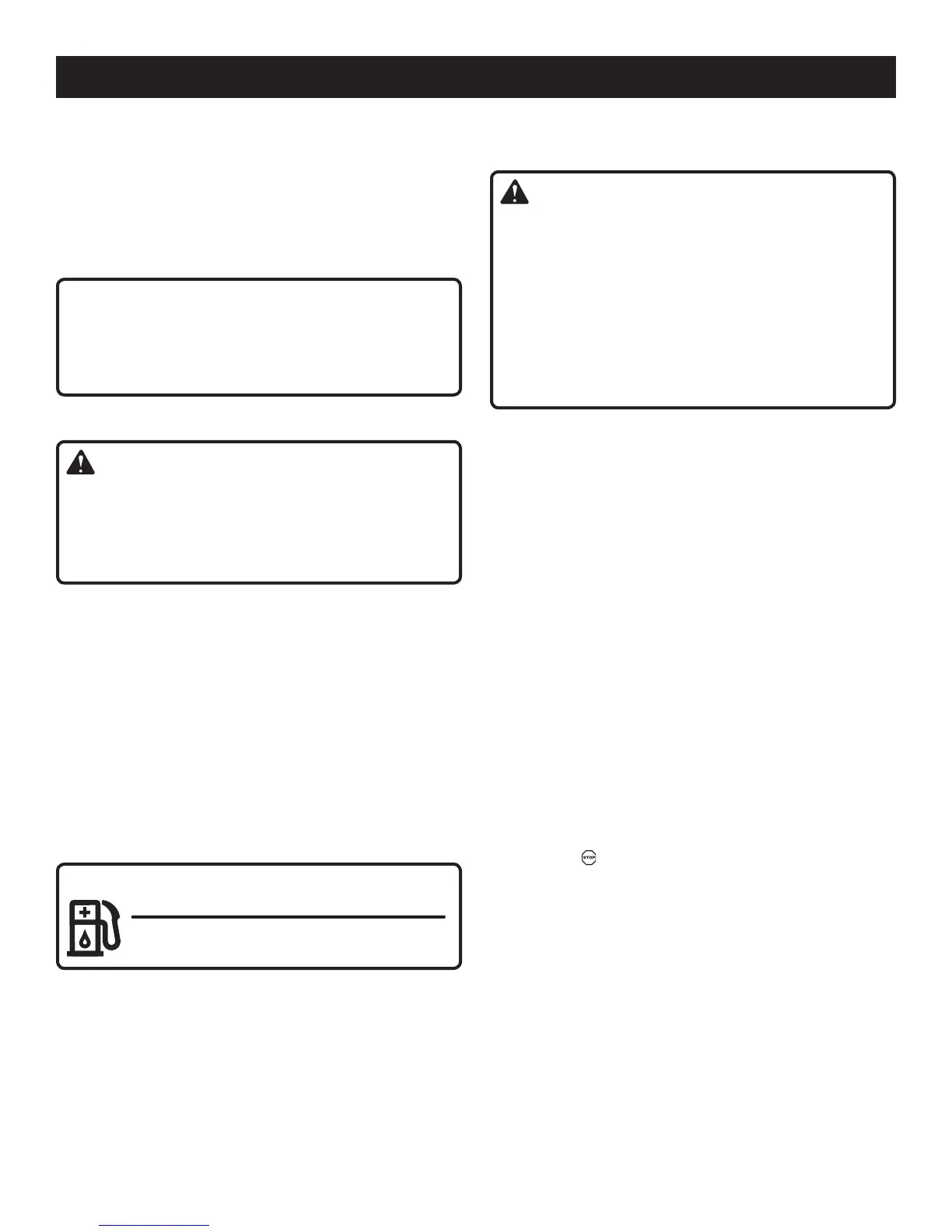 at least 30 ft. from refueling site before starting engine. Do