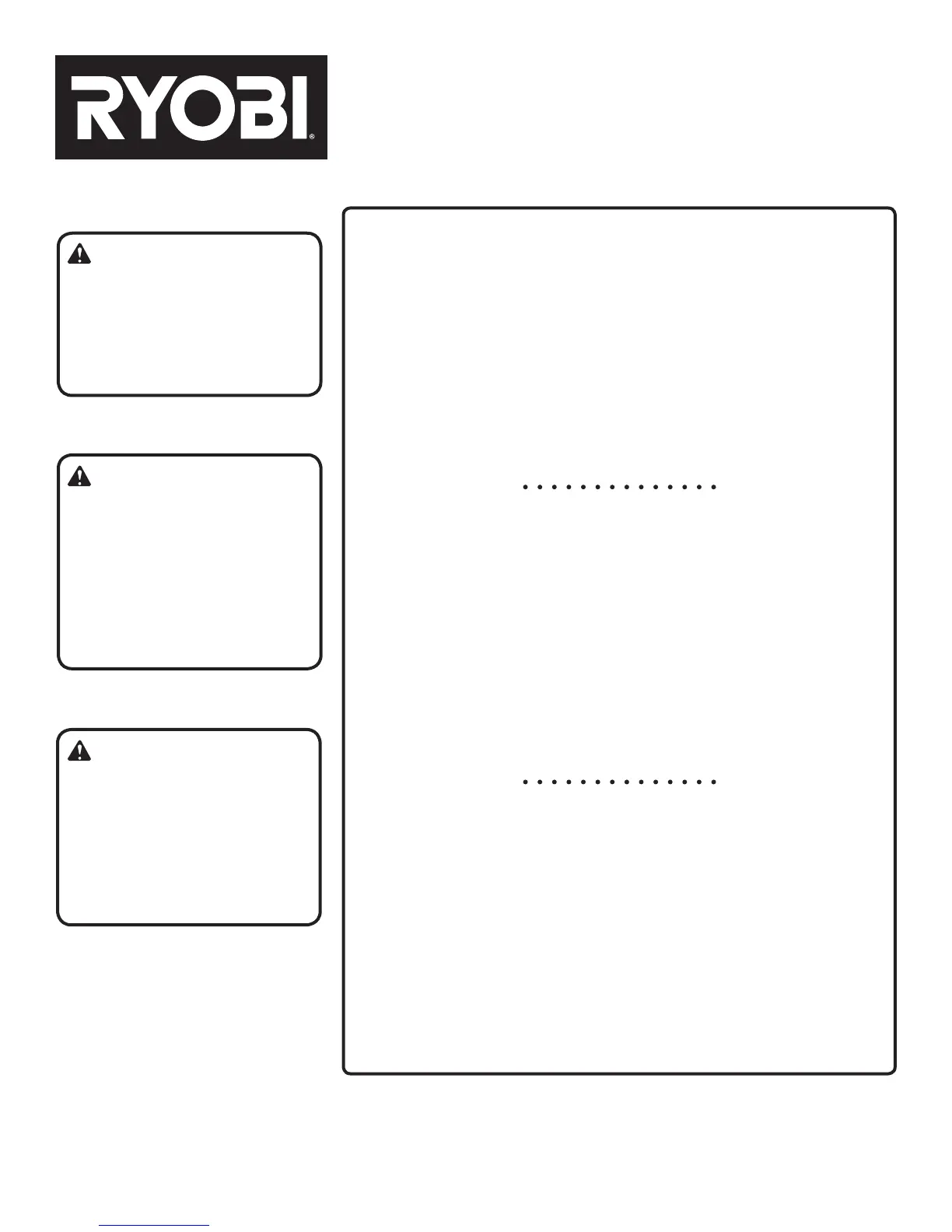 Replacement parts can be purchased online at www.ryobitools.com or by calling