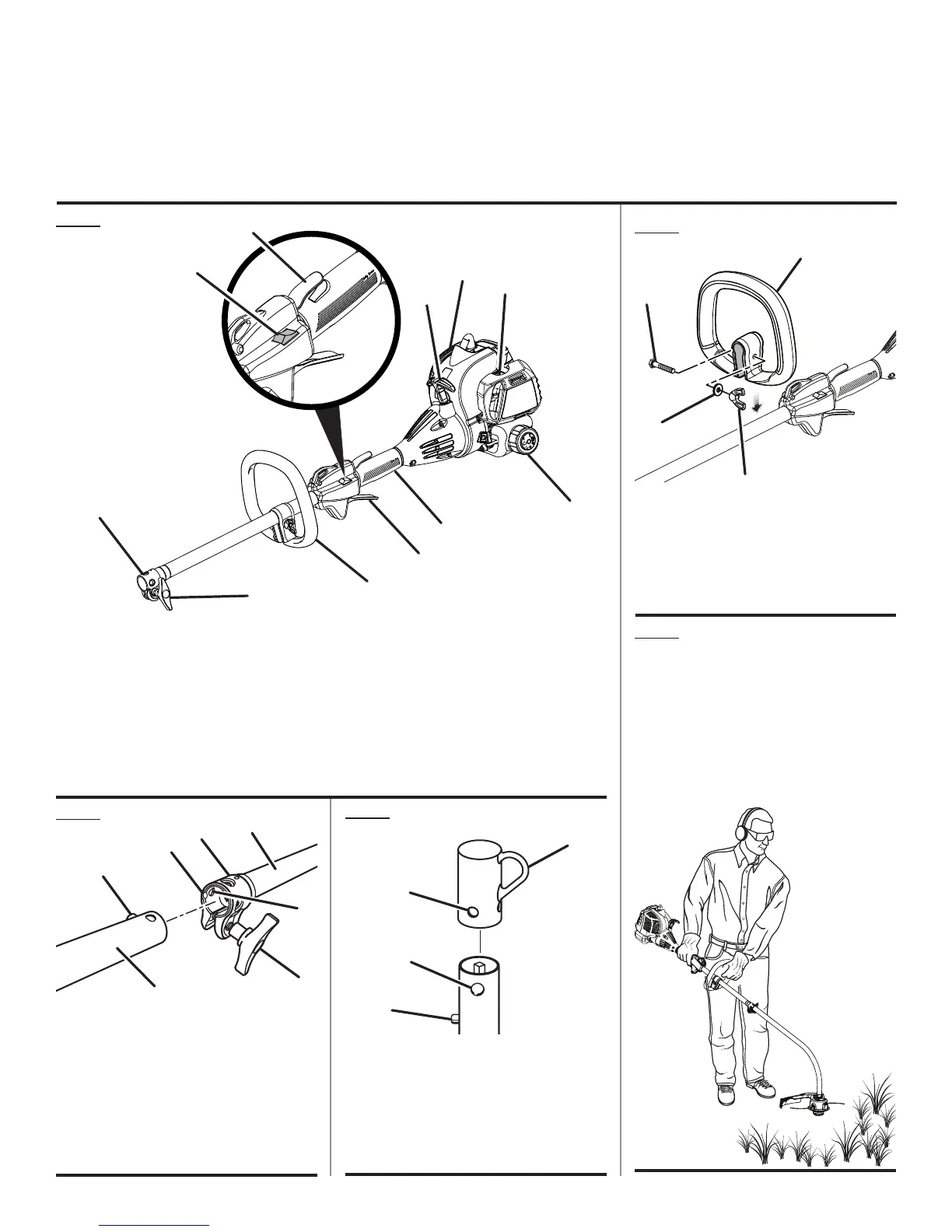 D - Starter grip and rope (poignée du lanceur et corde, mango del arrancador y cuerda)