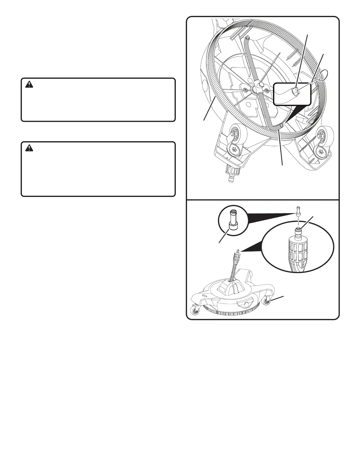 n Once the surface cleaner is installed, connect the hose to the
