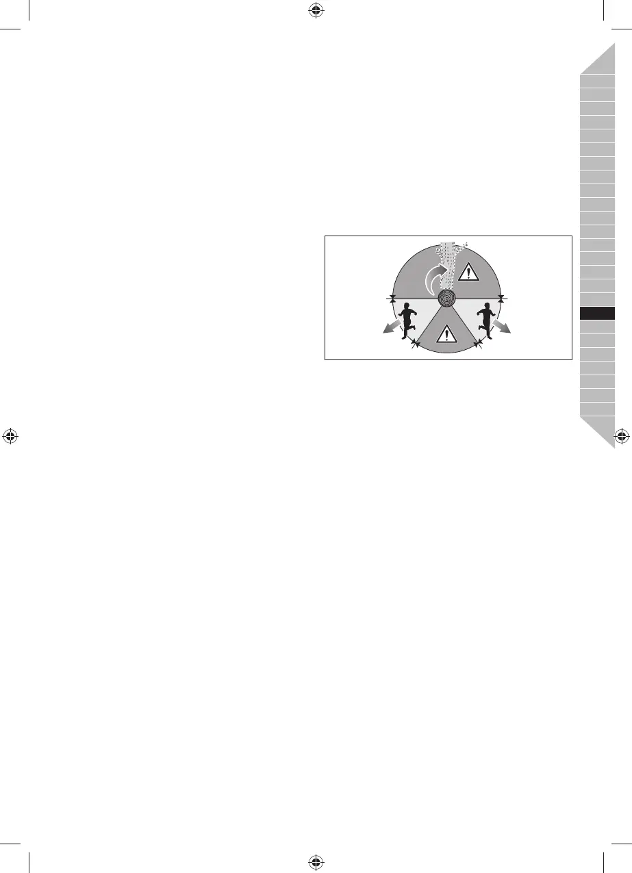 pjovimo grandinės sukimosi kryptis. Tokiu būdu darbuotojas