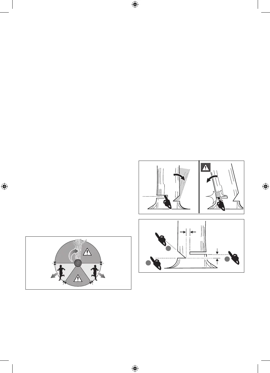 When the tree begins to fall, remove the chainsaw from