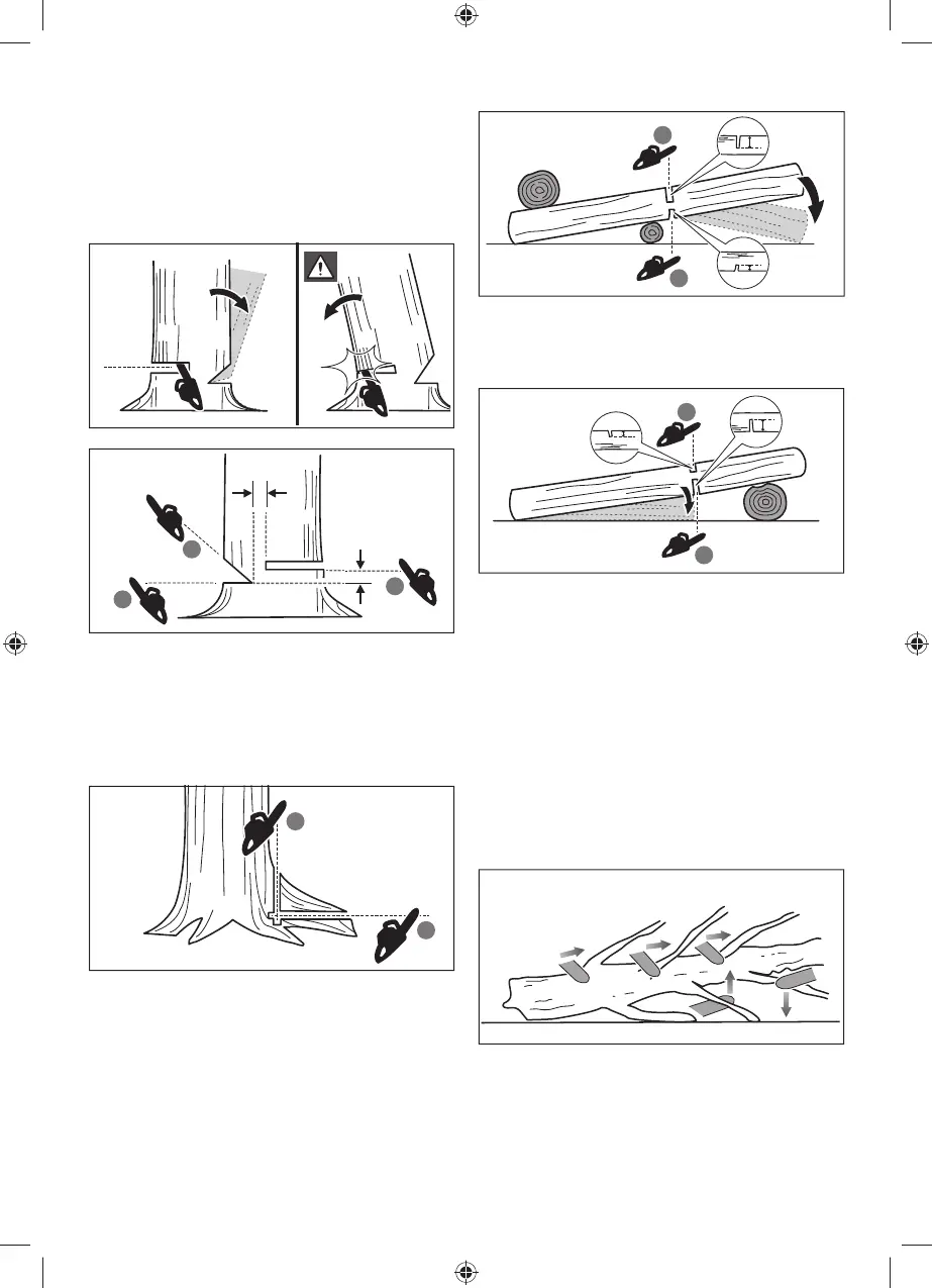 over, inden træet fældes. Sav først vandret ind og derefter