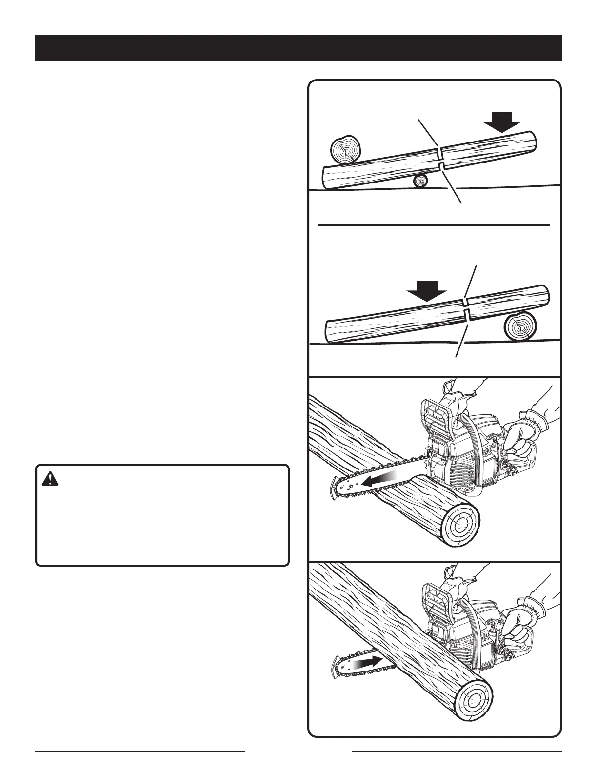 saw can become pinched or hung in the log if you