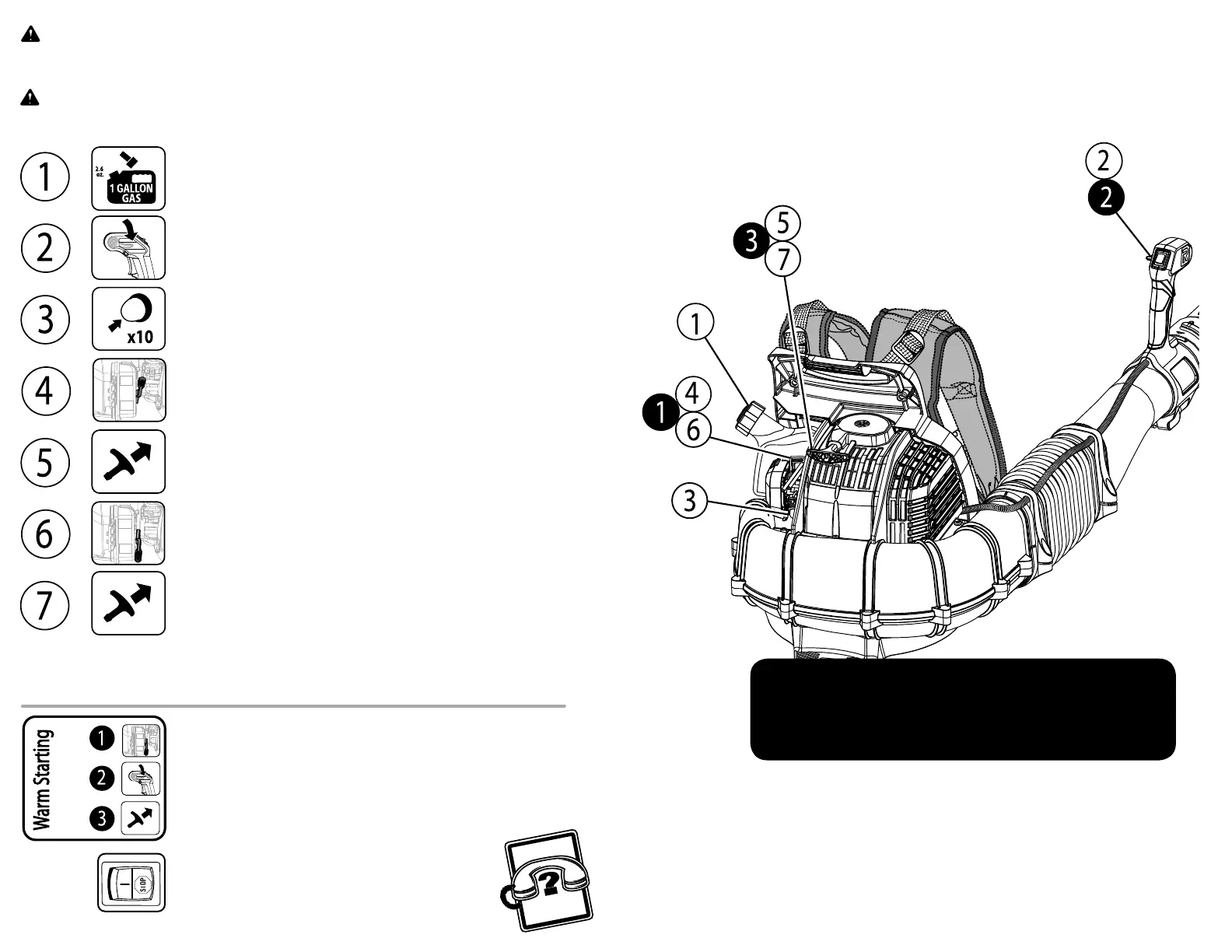 Tirer sur le poignée du lanceur et corde du démarreur jusqu’à ce que le moteur démarre.