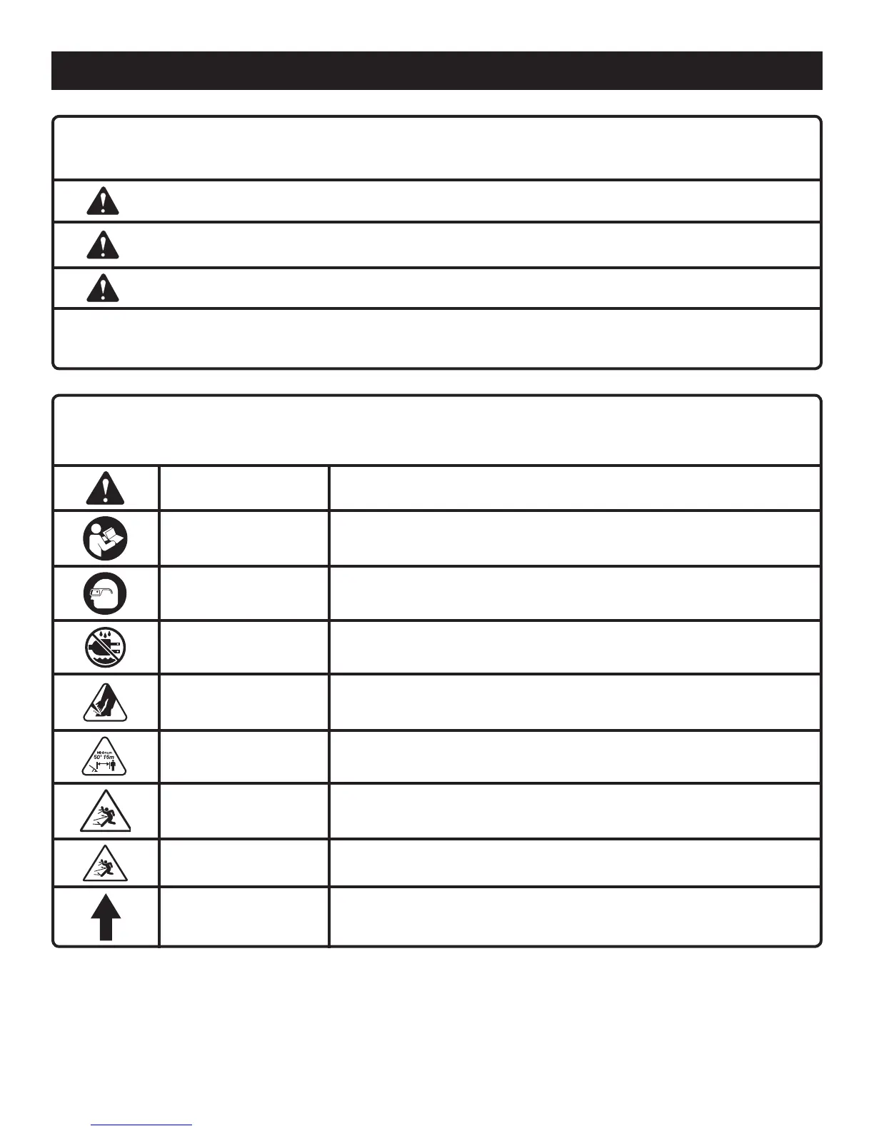 Risque de coupure Garder la lame tournante loin des mains et des pieds.