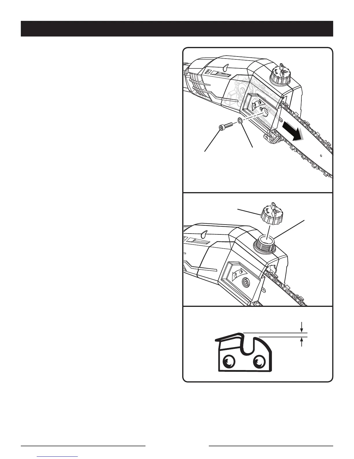 Serrer fermement la vis du carter de la chaîne