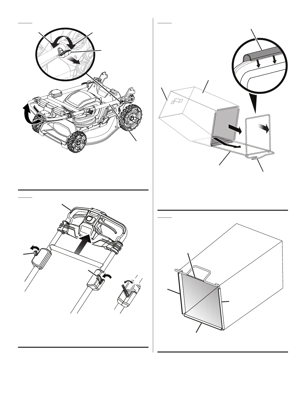 B - Handle lock lever (levier de verrou de la poignée, palanca de seguro del