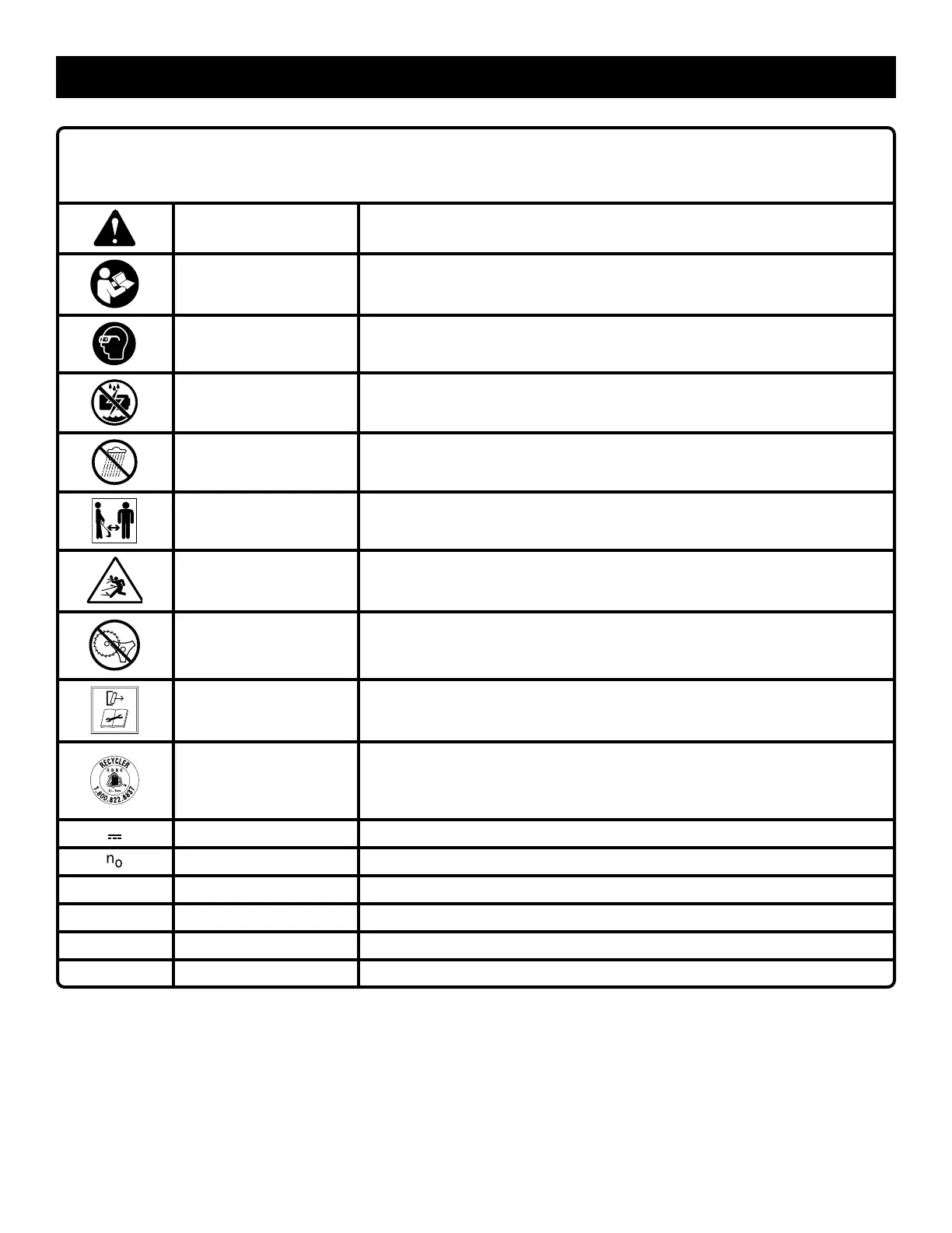 Ne pas utiliser de lame Ne jamais utiliser une lame quelconque sur un outil portant ce symbole.