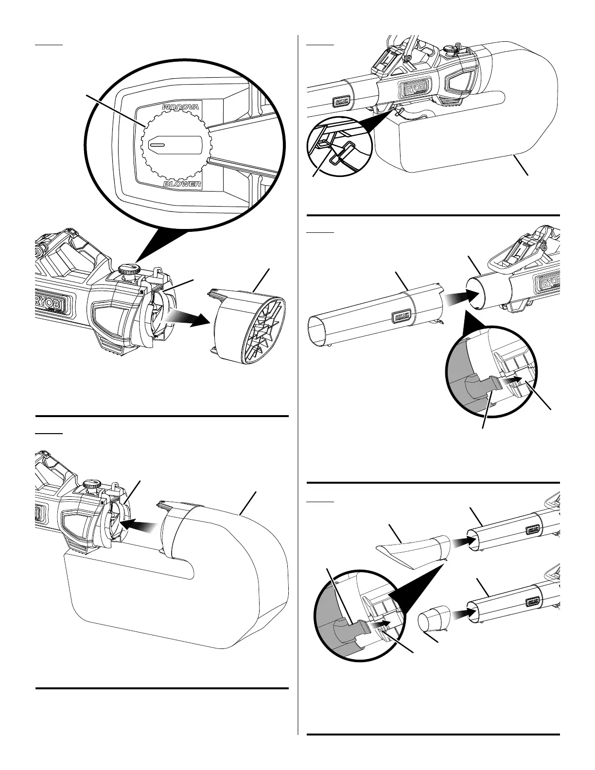 B - Blower inlet attachment (accessoire d’entrée du souffleur, accesorio de