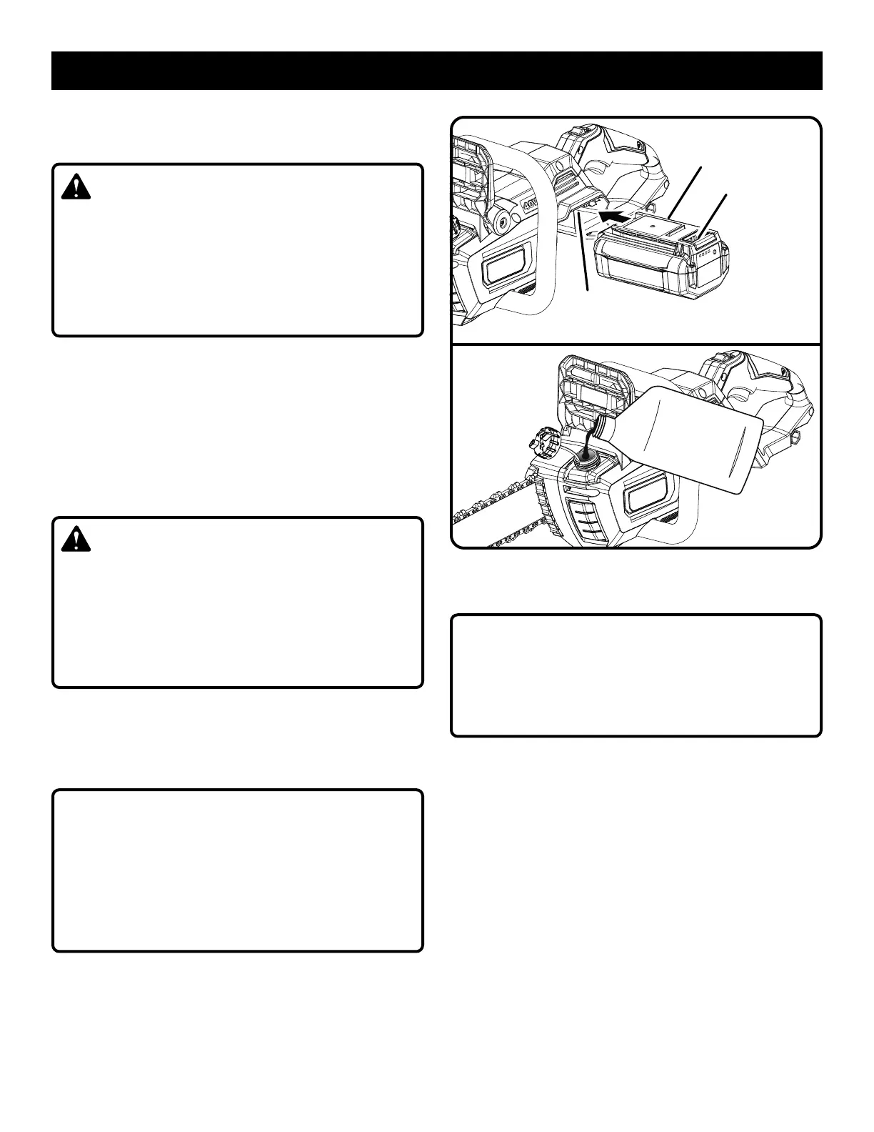 Place the battery pack in your chain saw. Align